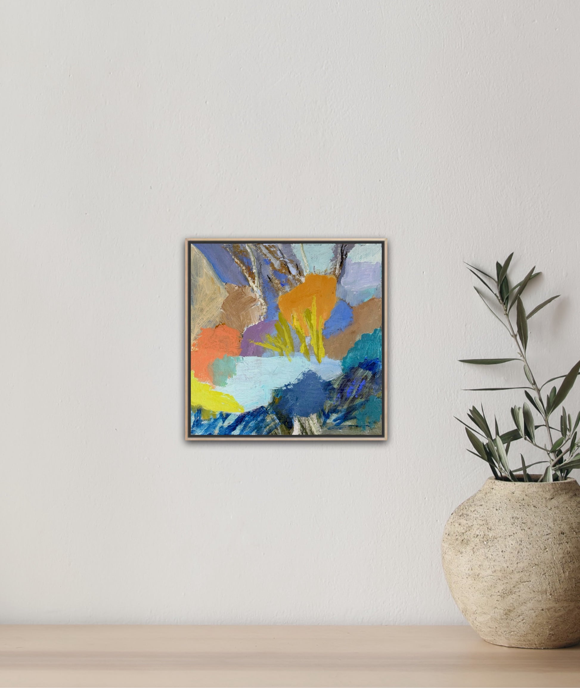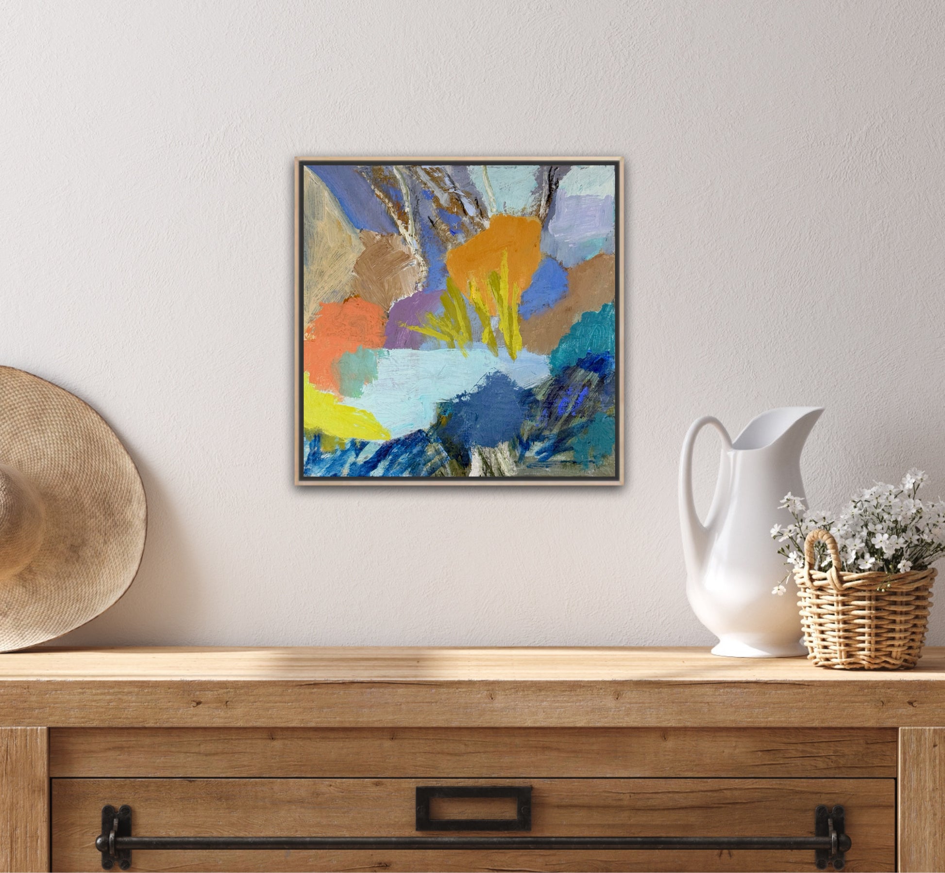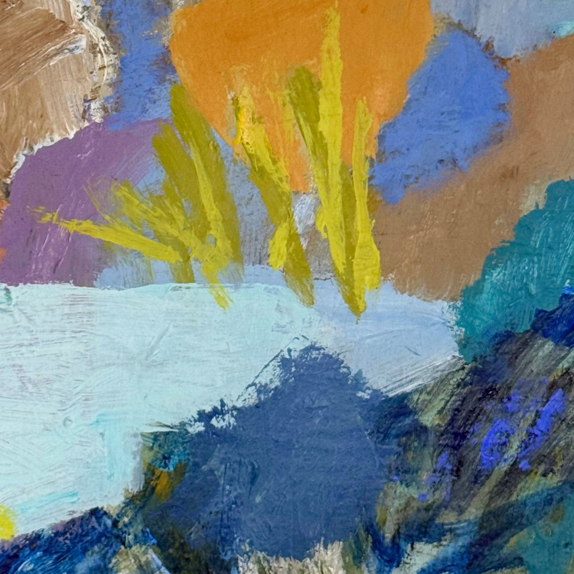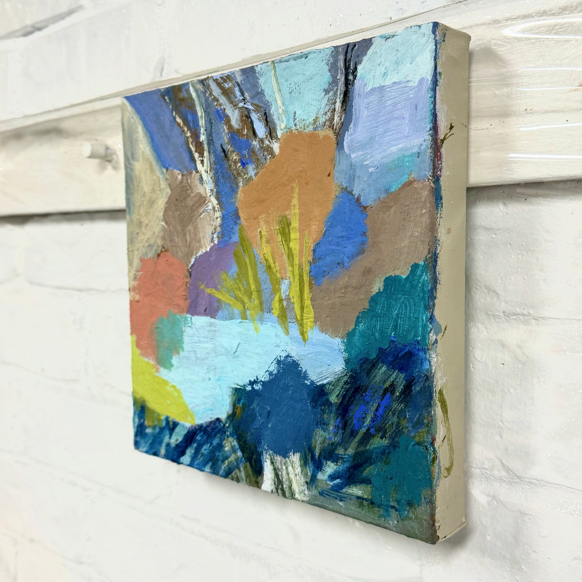 Up close, the surface is all layered textures, dragged paint, scumbled passages and bolder marks that cut through. It reads as a lagoon or creek bend without locking you into one place, which makes it easy to live with. It’s bright, but not loud, and it has that good push-pull between stillness and energy.